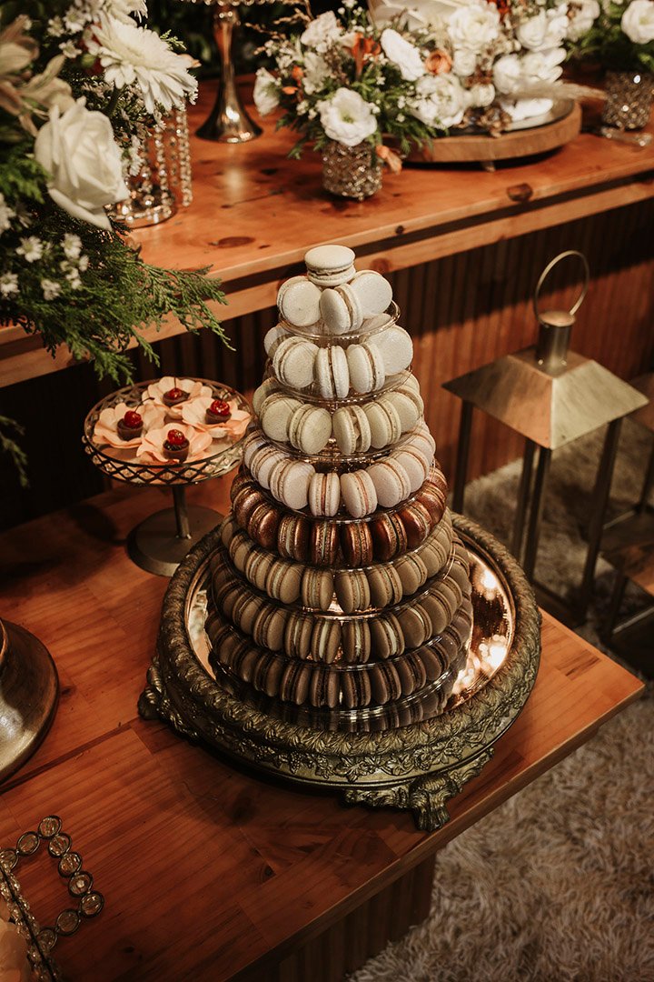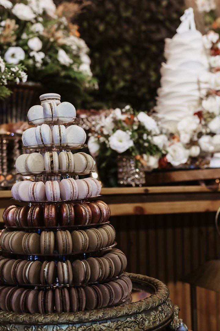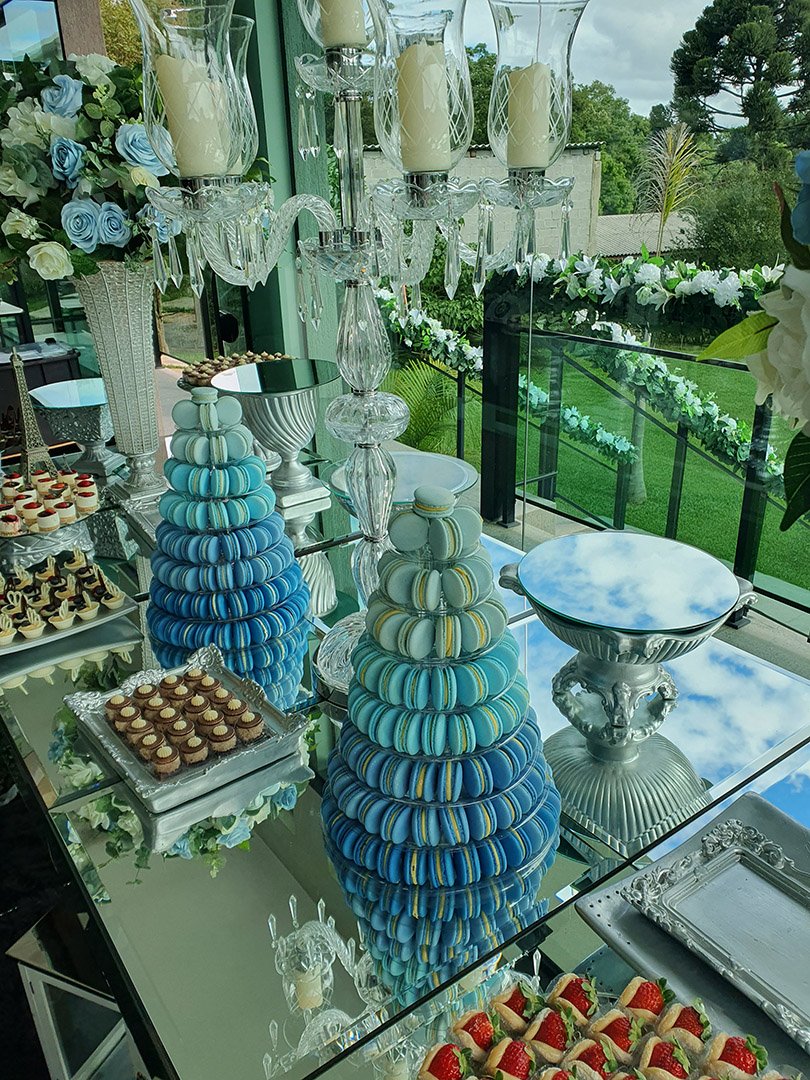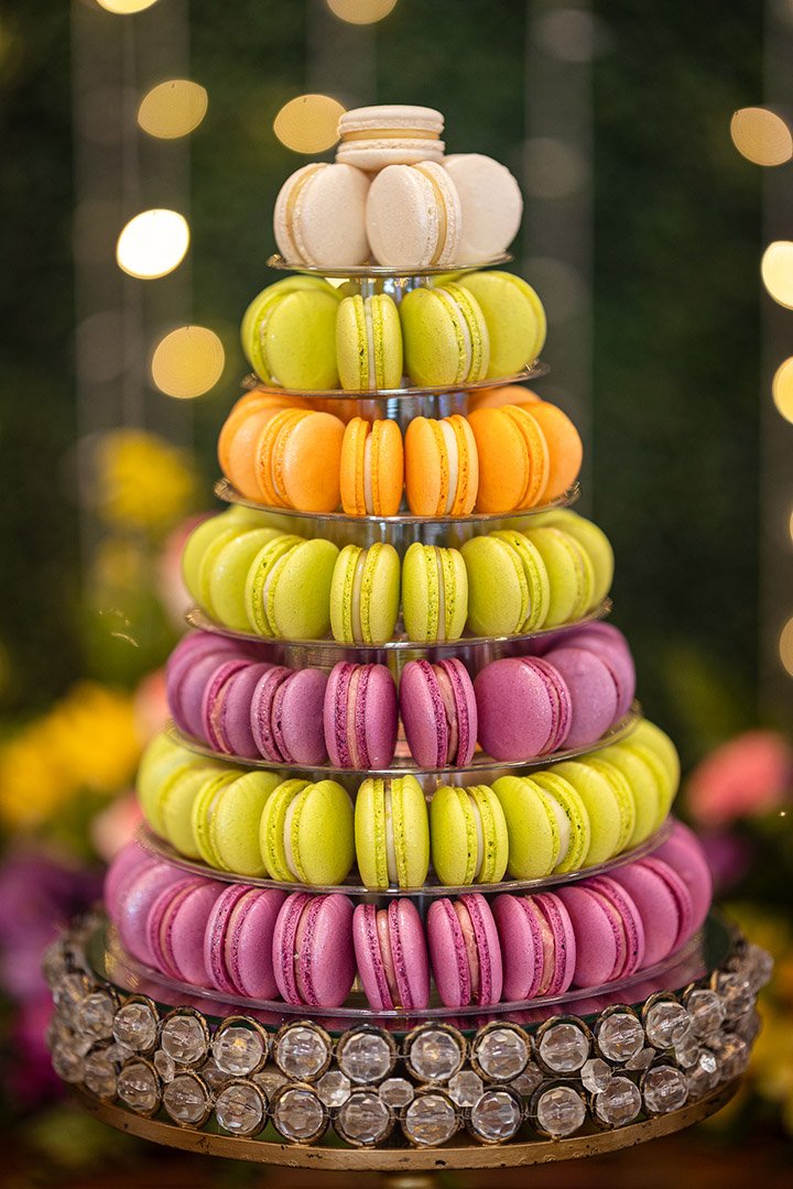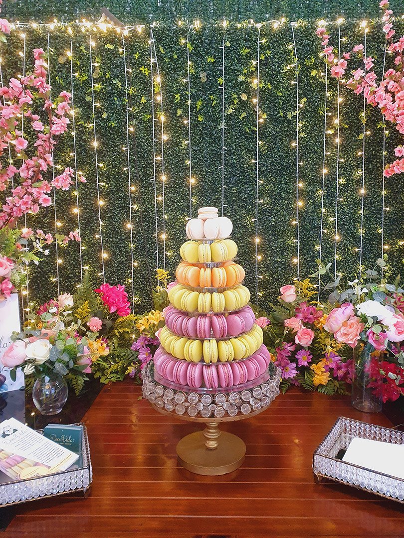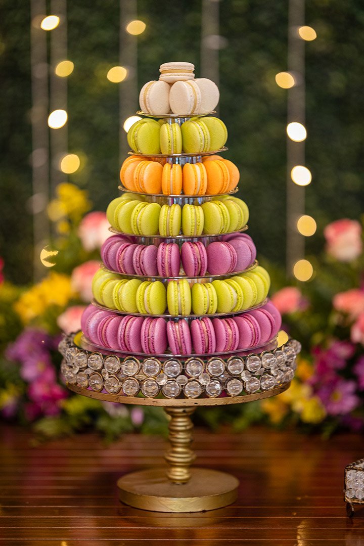 Com uma paleta vibrante de cores, variedade de sabores sofisticados e a possibilidade de personalização – incluindo impressões exclusivas nos macarons – essa torre encanta os olhos e conquista o paladar de todos os convidados.