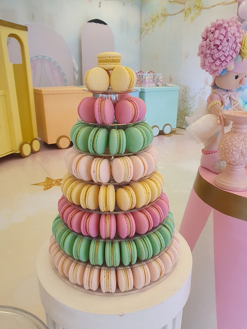 Perfeita para eventos, aniversários, casamentos e celebrações corporativas, nossa torre de macarons combina elegância, sabor e um toque de criatividade.
